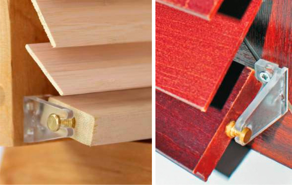 Ламелі, з яких виготовляють жалюзі, можуть бути шириною 25 мм або 50 мм. Для підйому та опускання ламелей використовується шнуровий механізм. Для повороту ламелей 25 мм використовується дерев’яна тростина, а для повороту ламелів 50 мм використовується інший шнуровий механізм.