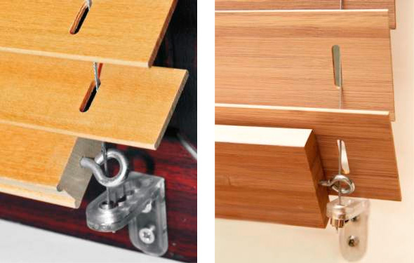 Шнурова драбинка або шнурова прошивка використовується за замовчуванням для скріплення ламелів у жалюзі. При цьому видно технологічні прорізи в ламелях.